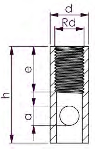 | Číslo výrobku | Zatížení [t] | Závit | Výška h [mm] | Vnější Ød [mm] | Délka závitu e [mm] | Průměr otvoru a [mm] | Počet kusů v balení | Hmotnost [kg/ks] |