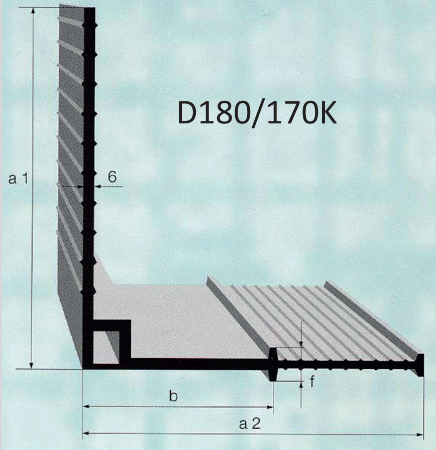 | Číslo výrobku | Typ [a1/a2] | Tloušťka pásu | Šířka [a1/a2] mm | Výška žebra [f] mm | Počet kotev [N] | Hmotn. [kg/MJ] | MJ |